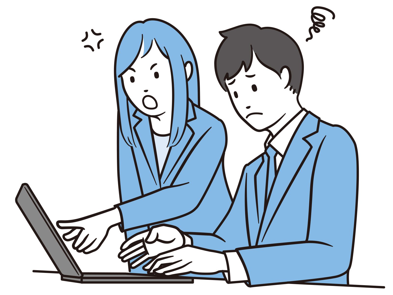 B-PC画面を見るビジネスマン2人怒り | 五感思考マネジメント | ワクワクはたらく株式会社